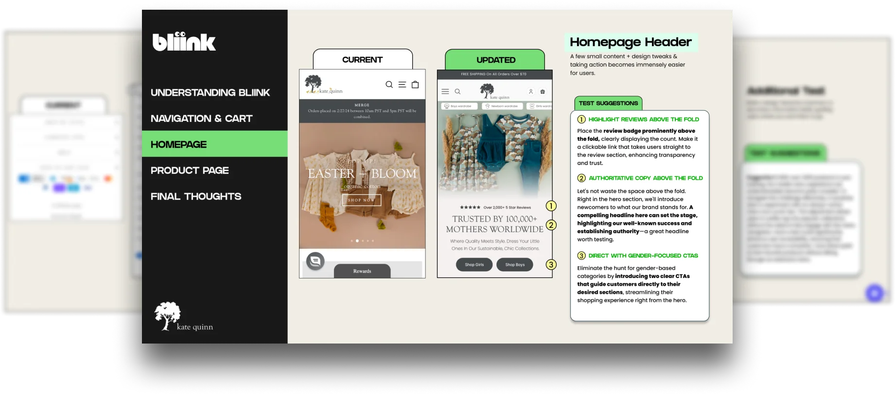 Gradually apply your Bliink suggestions and conduct tests where appropriate!